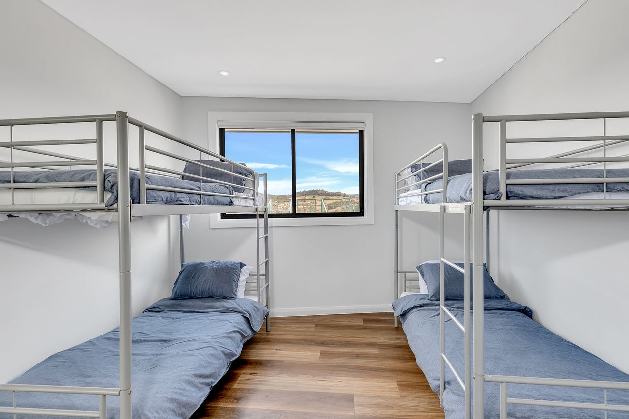 The home accommodates up to 14 guests, with the master bedroom boasting a king bed, walk-in robe, and private ensuite. Bedrooms two and three each with a queen bed and bedrooms four and five have two sets of single bunk beds.