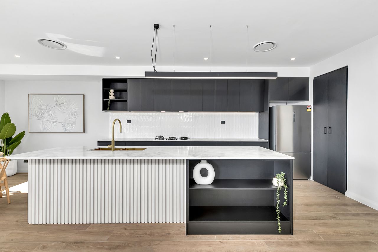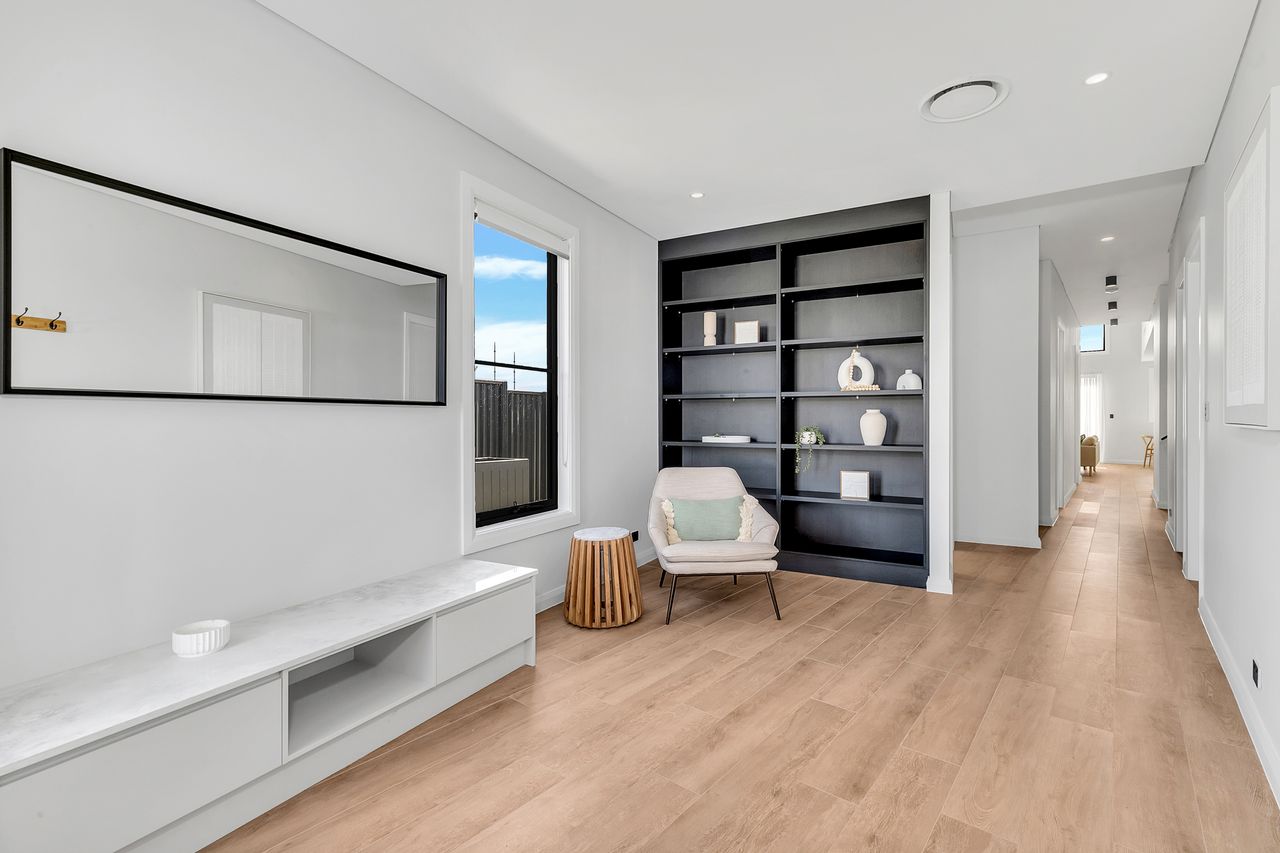The showstopping centerpiece of the home is a striking stone wall with built in wood fireplace—setting the scene for cozy evenings in the spacious open-plan living area. The gourmet kitchen is fully equipped with high-end appliances, complemented by sleek, modern furnishings throughout. Comfort is guaranteed year-round with underfloor heating, ducted air conditioning, and the warm ambiance of the fireplace.