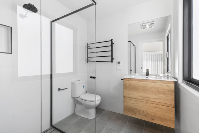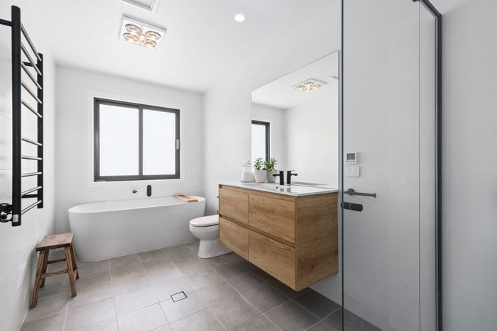 Three generous bedrooms offer luxurious slumber for all. The master features a king bed, walk-in robe, smart TV and ensuite with underfloor heating and heated towel rails. Bedroom two has a double bed and bunks with built-in robe, while bedroom three offers another king bed, built in-robe and TV. The main bathroom provides a serene sanctuary with a shower, large bathtub, heated towel rails, and underfloor heating.