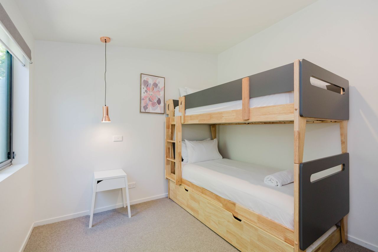 132 Munyang Cottage is a comfortable two bedroom, one bathroom property located just a short walk to the local shops with ski and snowboard or mountain bike rentals and year-round eateries. This single level home sleeps four guests: the main bedroom has a queen bed, and the second bedroom has a bunk bed.