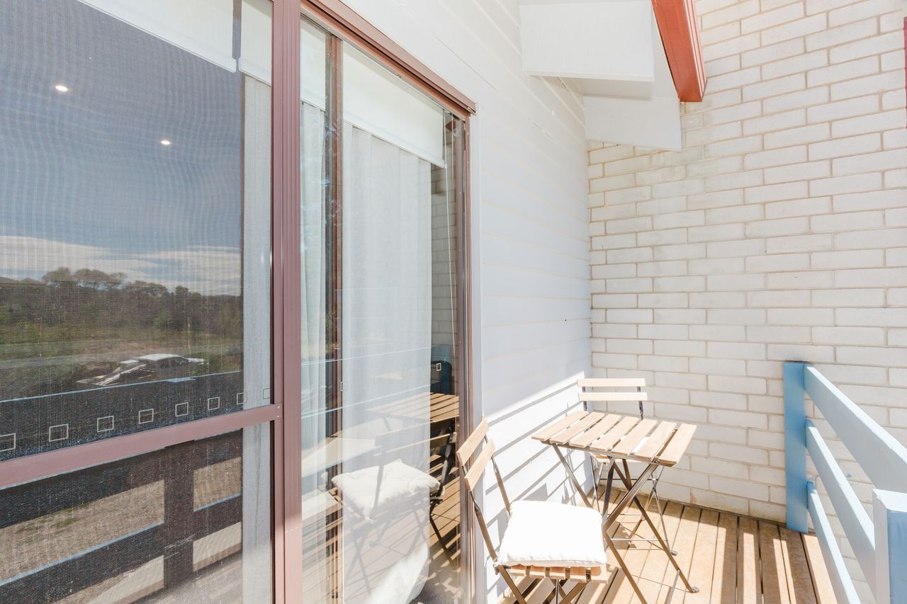 The open plan living area is upstairs with room to socialise across the lounge and dining area while cooking in the well equipped kitchen. It has reverse cycle air conditioning and access to the balcony.