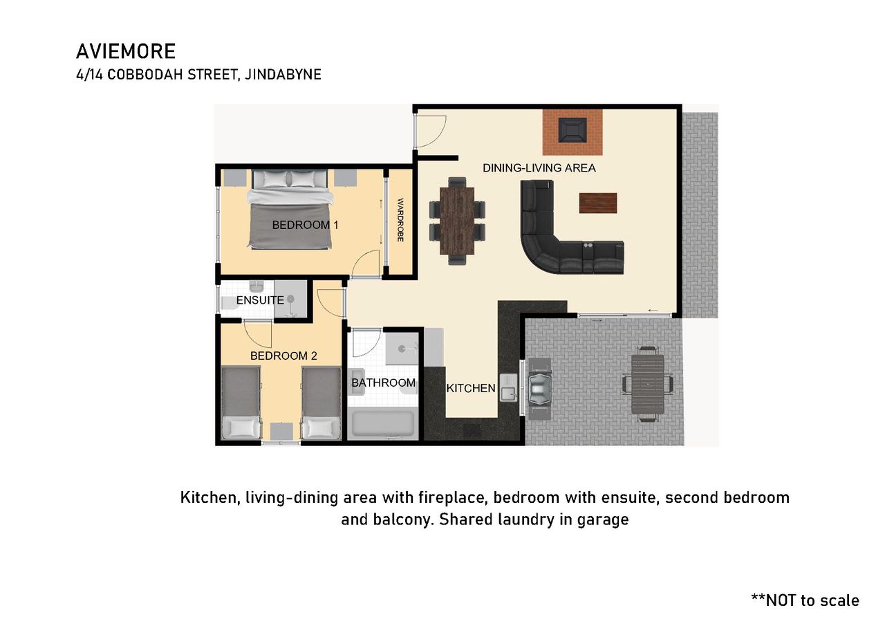 Guests benefit from two secure allocated parking spaces in the garage below the apartments, along with access to a shared laundry and drying room, ideal for ski gear and outdoor equipment. Please note the garage has a height clearance of 2.1 metres and is accessed via an inclined driveway with internal stairs leading to the apartment.