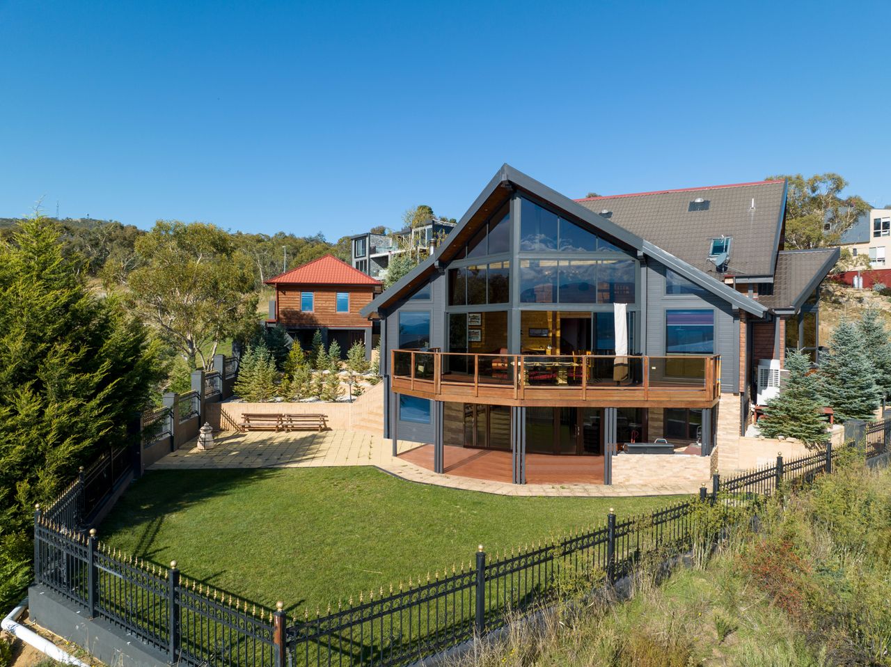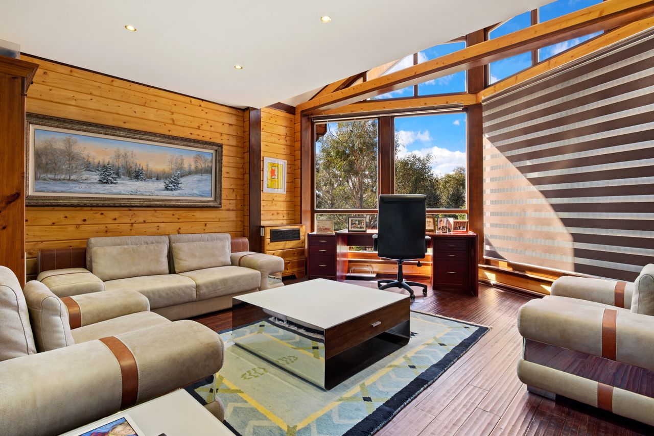 This quirky split-level property comes jam packed with all of the luxuries of a seven bedroom get-away home. Relax in one of the two bright living areas, cosy up with a book in the study or if skiing all day wasn't enough, take advantage of home gym downstairs.