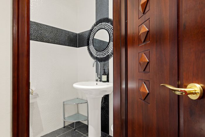 Upstairs you will find the master bedroom with a king bed that boasts a beautiful ensuite with a jet-shower over a triangle spa-bath and double vanity, another two queen bedrooms and a bathroom with a shower, double vanity and a toilet.