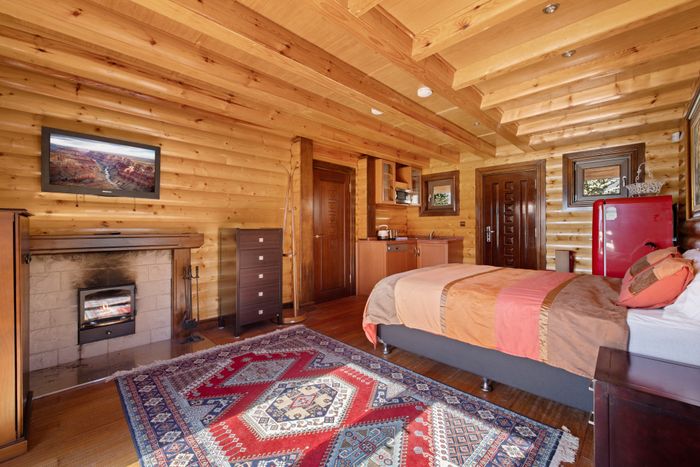 To the left of the driveway, you will be greeted with the cosy Cabin, that comes fully equipped with a queen bedroom, kitchenette that includes a dishwasher, electric heating and an ensuite that includes a jet-shower and a toilet. The Cabin is also equipped with a new electric sauna to soothe the muscles after a long day on the mountain.