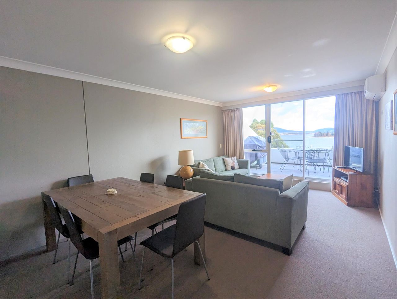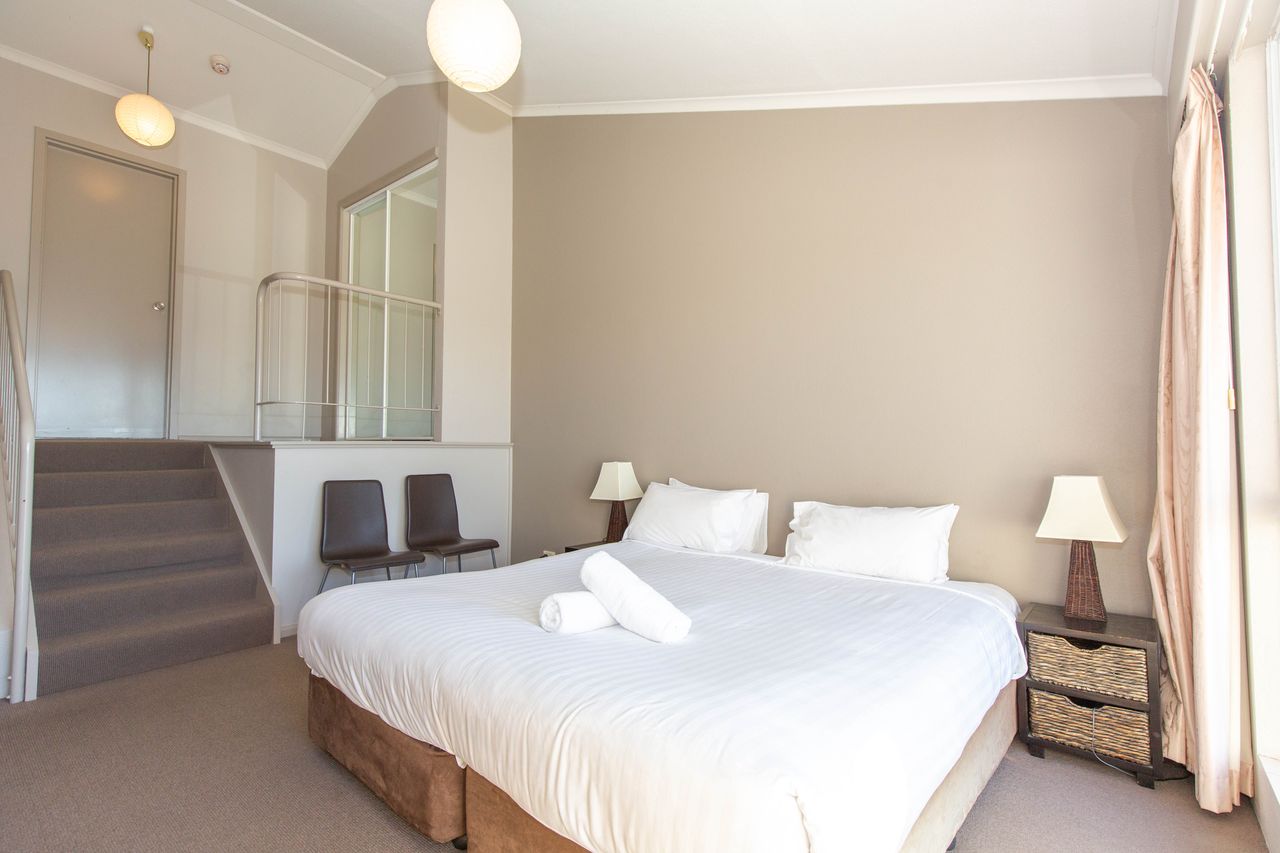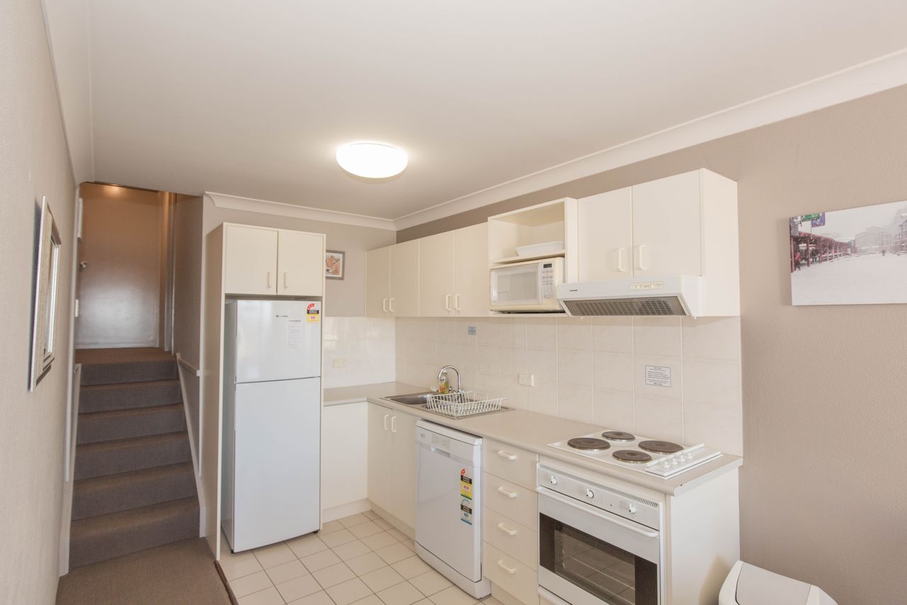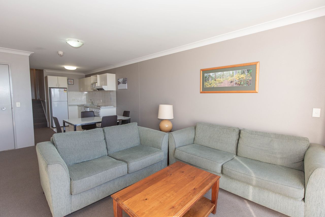 2Lovely top floor two bedroom apartment at Rydges Horizons with two balconies on the lake. The apartment has a full kitchen with dishwasher, air-conditioning, electric heating and open living with new smart TV and free wi-fi. On the second floor you will find the large main bedroom with ensuite and corner bath and private balcony. In between, on the split level you will find the second bedroom with two single beds and two trundle beds and the main bathroom with laundry facilities.