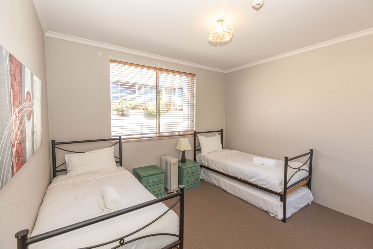 Anna W - 26th August 2024Lovely views & comfy 2 bedroom split level unit, a home away from home. 2 bedrooms with 2 bathrooms, and spa to main room. Queen bed in main and x4 singles in second room. Each room with its own balcony overlooking Lake Jindy. Fully self contained kitchen with dishwasher and microwave, including an outdoor bbq. All utensils & cleaning products are there, and washing machine & dryer in lower bathroom. Allocated parking under cover for 2 cars. Complimentary use of Heated pool/darts/snooker.
