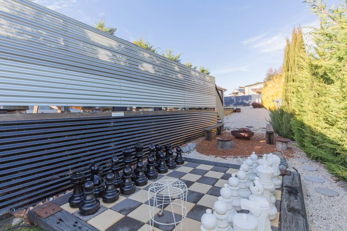 A large deck wraps around the house with an outside dining area, BBQ, fire pit, and a life size chess game to keep everyone entertained. Located on a battle-axe block, there is parking for up to four vehicles or your boat.