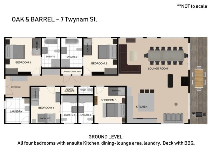 Leah H - 21st June 2022We travelled as a group of 4 families. We all loved the kitchen and really appreciated that each bedroom had its own ensuite. We highly recommend this accommodation and we look forward to staying here again.
