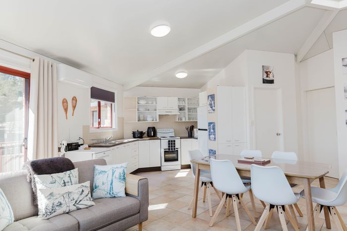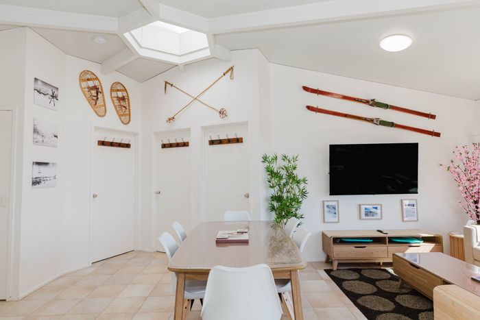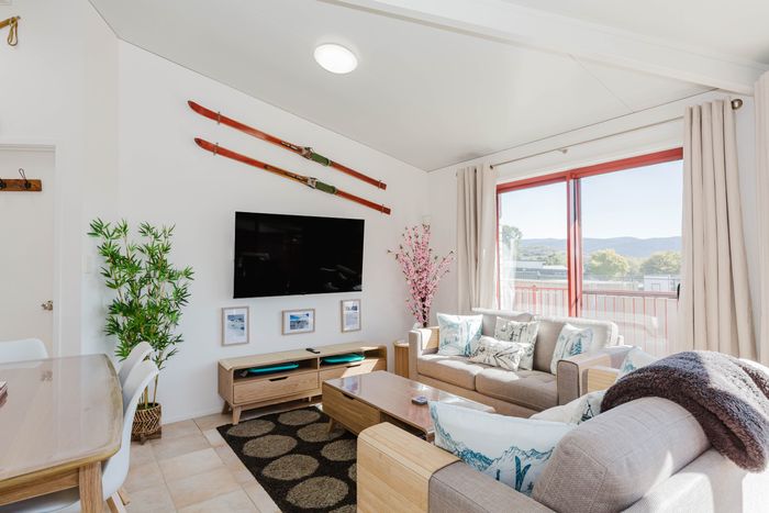 It is a cosy, open plan, fully self contained, freestanding accommodation with north facing balcony and free wi-fi (winter only). It has been given a tasteful refresh just in time for winter 2025 with new furniture, appliances including a dishwasher and bedding. Boasting three bedrooms, one queen room plus two rooms with two single beds each, one bathroom, large TV, comfy lounges, double glazed windows, reverse cycle air-conditioner and underfloor heating make this property a great choice.